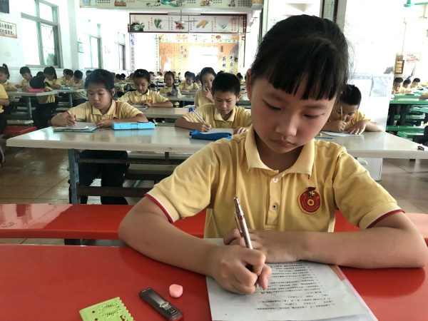 18日下午,學(xué)校餐廳里一片熱鬧的景象,那是芙蓉學(xué)校正在進(jìn)行課外閱讀考級(jí)活動(dòng)。此次考核沿用了芙蓉學(xué)校等級(jí)考核的方式,由學(xué)校統(tǒng)一組織,學(xué)生自愿報(bào)名參與,分等級(jí)考核。由全體語(yǔ)文教師監(jiān)考、閱卷。閱讀考級(jí)內(nèi)容為芙蓉學(xué)校推薦書目,主要考查學(xué)生課外閱讀水平以及閱讀技巧。試題內(nèi)容涉及面廣??紙?chǎng)里,孩子們或低頭蹙眉,冥思苦想;或神采飛揚(yáng),自信從容,他們都全心全意地投入到答題之中去,爭(zhēng)取交上一份令自己滿意的答卷。