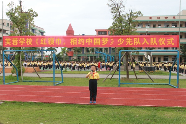 為深入學(xué)習(xí)宣傳貫徹黨的十九大精神,引領(lǐng)少先隊(duì)員踐行社會主義核心價值觀,增強(qiáng)少先隊(duì)員爭做新時代好隊(duì)員、成長為擔(dān)當(dāng)民族復(fù)興大任的時代新人的信心與決心,,5月30日,芙蓉學(xué)校舉行了以“紅領(lǐng)巾相約中國夢”為主題的新隊(duì)員入隊(duì)儀式。