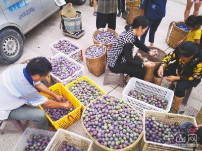綏江縣南岸鎮(zhèn)李子收購點,工人們在給李子篩選和分類。