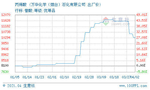 生意社:4月1日萬(wàn)華化學(xué)石化華北丙烯酸價(jià)格動(dòng)態(tài)