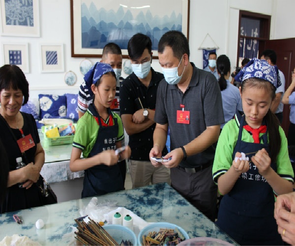 下午三點(diǎn)多,檢查組一行在鳳鳴小學(xué)行政班子的陪同下,一同走進(jìn)校園,了解學(xué)校素質(zhì)教育及特色教育開(kāi)展情況。他們先參觀了“書(shū)法長(zhǎng)廊”,欣賞師生的書(shū)法作品,肯定了校園濃厚的書(shū)香氣息;隨后參觀了學(xué)?!扒喑鲇谒{(lán)”扎染工作坊,在學(xué)生的介紹下饒有興致地體驗(yàn)了扎染作品的制作,對(duì)鳳鳴小學(xué)以中國(guó)傳統(tǒng)手工藝——扎染作為傳承項(xiàng)目,讓學(xué)生學(xué)習(xí)民族文化,傳承民族精神的做法給予了肯定。檢查組最后來(lái)到體育館,了解了學(xué)校的體育特色項(xiàng)目——乒乓球,這是鳳鳴小學(xué)的傳統(tǒng)體育特色,連續(xù)5年在市鎮(zhèn)獲得優(yōu)異成績(jī)。