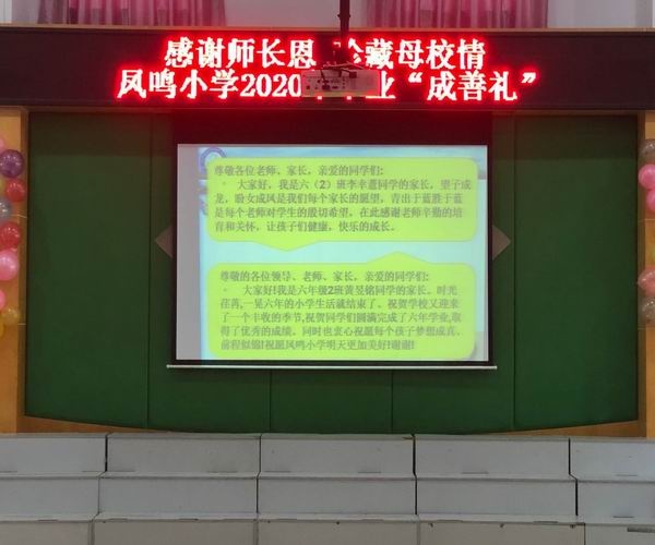 典禮結束后,我們相信鳳鳴小學每一位畢業(yè)生都會帶著學校老師們給予他們的希望和牽掛,帶著家長們的關愛,帶著同學們的祝福,帶著對未來的憧憬,開啟新征程,用充滿朝氣的激情去擁抱明天的太陽!