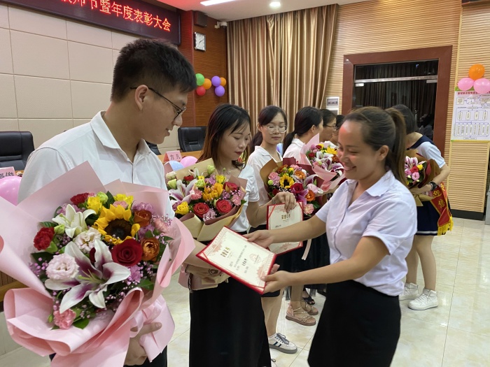 伴隨著悅耳的音樂,鄧亮副校長、文燕芳主任、衡曉紅主任等行政一一為獲獎教職工頒獎。