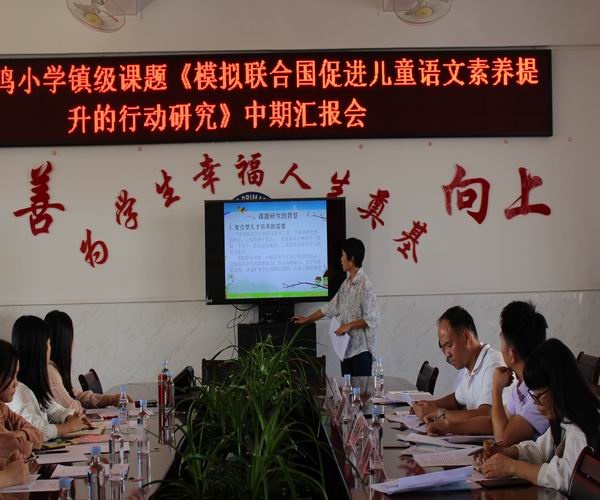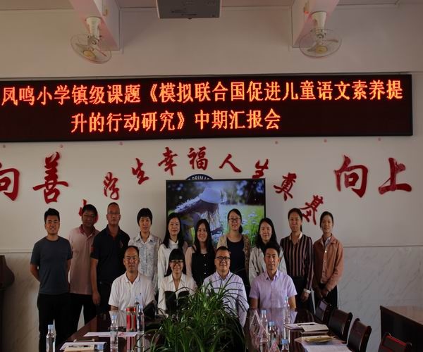 11月12日,鳳鳴小學(xué)舉行鎮(zhèn)級(jí)課題《模擬聯(lián)合國(guó)促進(jìn)兒童語文素養(yǎng)提升的行動(dòng)研究》中期匯報(bào)會(huì),東鳳鎮(zhèn)課題專家組的林紅主任、陳名勝主任、何中建主任、陳簿新主任,鳳鳴小學(xué)吳桂鳳副主任以及課題組全體成員參加本次會(huì)議。