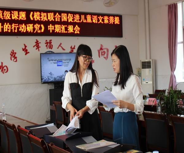 接著,鎮(zhèn)課題專家組的陳紅主任根據(jù)推進(jìn)情況進(jìn)行了專業(yè)而細(xì)致的點(diǎn)評(píng)。她首先肯定了課題組的成員所進(jìn)行的富有成效的工作,贊賞《模擬聯(lián)合國(guó)促進(jìn)兒童語文素養(yǎng)提升的行動(dòng)研究》選題富有新意,很有研究?jī)r(jià)值。目前,“模擬聯(lián)合國(guó)”多數(shù)是在大學(xué)、高中階段開展研究,鮮少在小學(xué)進(jìn)行。課題組成員能大膽嘗試,進(jìn)行創(chuàng)造性工作。同時(shí),陳主任也指出課題推進(jìn)當(dāng)中的不足,指導(dǎo)課題組老師可以收集心得收獲、圖片、抓拍視頻,準(zhǔn)備更有價(jià)值的資料,勉勵(lì)老師們?cè)俳釉賲枺颜n題做得更加扎實(shí)細(xì)致。