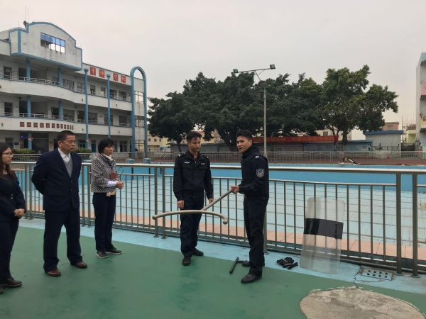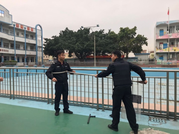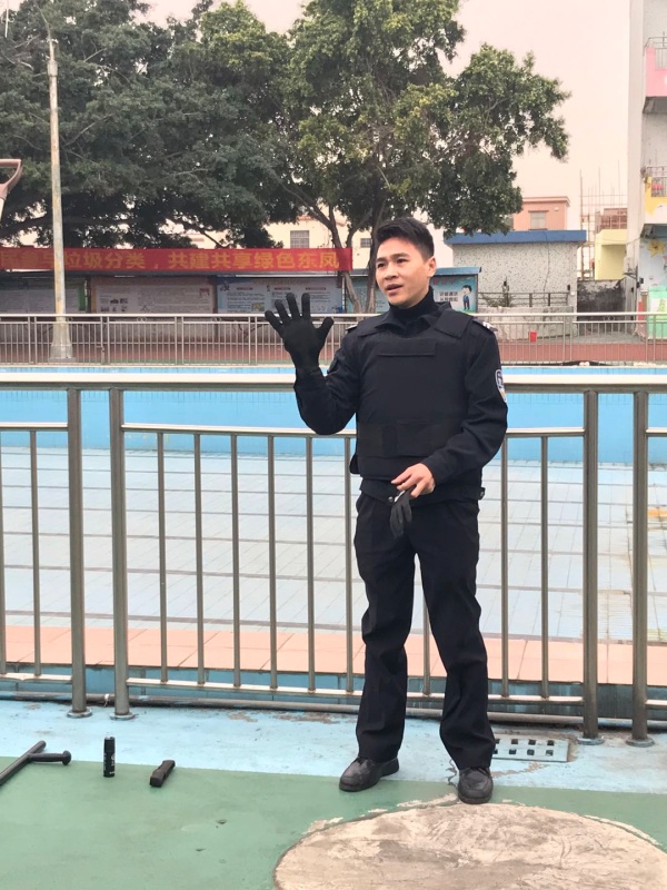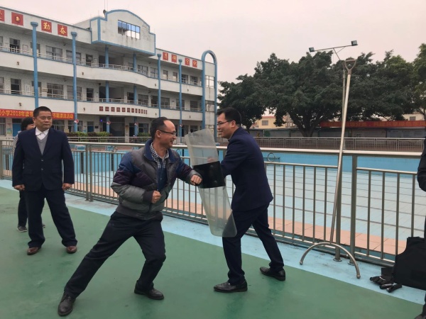 下午放學(xué)后,東罟小學(xué)全校教師集中在學(xué)校保安室門口,演練開始前首先由東罟村協(xié)警對(duì)全校老師進(jìn)行了反恐防爆知識(shí)講述,他先介紹了防爆衣及防割手套的正確穿著方法,接著介紹了反恐鋼棍、鋼叉及防爆盾的正確使用方法、安全注意事項(xiàng)及攻防技能,并且進(jìn)行了直觀的演示,以保證演練的安全進(jìn)行。接著演練開始,一名歹徒趁學(xué)校放學(xué)之際校門開放時(shí)偷偷溜進(jìn)校園里。學(xué)校安保人員立即向?qū)W校匯報(bào),并啟動(dòng)應(yīng)急預(yù)案,全校教師快速響應(yīng),嚴(yán)格按照突發(fā)事件應(yīng)急預(yù)案要求,迅速到崗。學(xué)校應(yīng)急隊(duì)員的老師立即拿起鋼叉、盾牌等裝備上前阻截暴徒,成為保護(hù)學(xué)生的第一道防線。很快,保安、學(xué)校應(yīng)急隊(duì)員聯(lián)手制服了這名入侵校園的歹徒。在全校老師的認(rèn)真配合下,東罟小學(xué)的防暴演練取得了非常好的效果,這與東罟小學(xué)對(duì)安全工作的重視和對(duì)防暴工作的細(xì)致安排是分不開的。