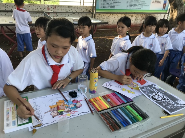 本次活動豐富多樣,有講革命故事比賽,有繪畫、書法展示,有燈籠制作以及手工輕粘土的制作,有咸水歌展演,還有猜燈謎、字謎活動。下午三點,校園里彩旗飄揚(yáng),伴隨著歡樂的歌聲,活動正式拉開了序幕。