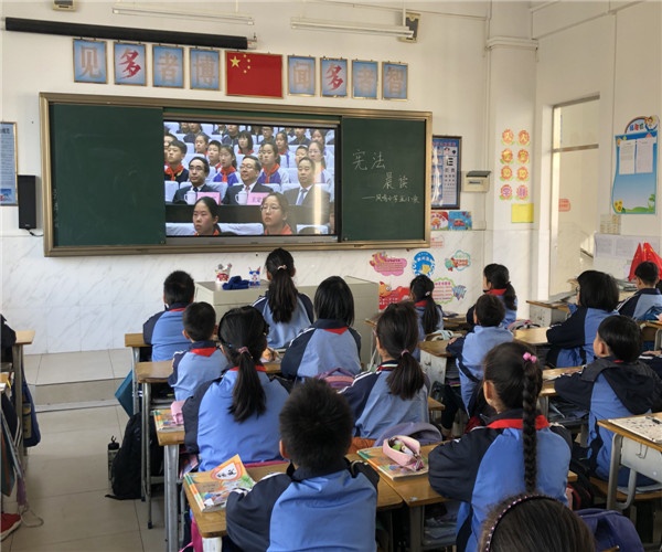 上午九點,鳳鳴小學全體教師在各自的工作崗位收看“憲法晨讀”網絡直播,學習憲法精神,讓法治信仰根植于心。各班學生在班主任的帶領下,在各班教室內同時開展了學習活動。