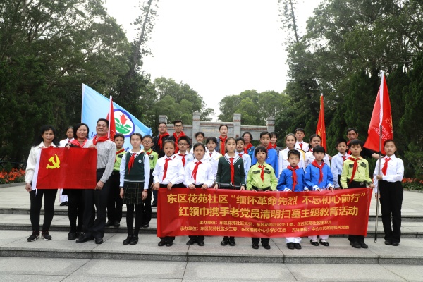 為緬懷人民英雄,理解“紅領(lǐng)巾代表紅旗的一角,是革命先烈的鮮血染成”的深刻含義,理解中國(guó)少年先鋒隊(duì)以“先鋒”命名就是學(xué)先鋒、做先鋒的內(nèi)在意義,引導(dǎo)少先隊(duì)員傳承紅色基因,培育報(bào)國(guó)志向。4月4日下午東區(qū)柏苑中心小學(xué)黨支部、少工委組織黨員、隊(duì)員代表滿懷崇敬之情參加花苑社區(qū)舉辦的“緬懷革命先烈 繼承革命遺志”紅領(lǐng)巾攜手老黨員祭英烈活動(dòng)。