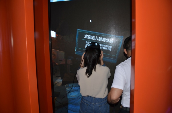 之后老師們上到二樓進(jìn)入禁毒宣傳教育廳,教育廳又分為認(rèn)識毒品、全球毒情、毒品的危害、全民禁毒、完美公益和體驗(yàn)區(qū)六大展區(qū)。全球毒情展區(qū)部分,講解員一一為老師們介紹了傳統(tǒng)毒品、新型合成毒品和偽裝毒品三大類毒品,其中偽裝毒品像“跳跳糖”、“奶茶”“阿拉伯茶”是全球流行的第三代毒品,對青少年兒童具有非常強(qiáng)的欺騙性和誘惑性。通過觸摸全球毒情球,可以很直觀的了解到全球毒情。為了更進(jìn)一步的了解毒品的危害,老師們還體驗(yàn)了VR毒害漫游。VR毒害漫游真實(shí)模擬吸毒之后人視力模糊、頭暈?zāi)垦?、意識渙散的感覺,通過這種直觀的感受讓人真切感受吸毒的危害。緊接著講解員帶領(lǐng)老師們進(jìn)入自述屋聆聽吸毒者的錄音,該錄音配有沙畫,真實(shí)再現(xiàn)了吸毒者因?yàn)槲靖冻龅膽K烈代價(jià)。自2006年以來,中山市禁毒取得了卓有成效的成績,在禁毒成果展示廳內(nèi)講解員還向老師們介紹了中山市禁毒措施和禁毒成果。