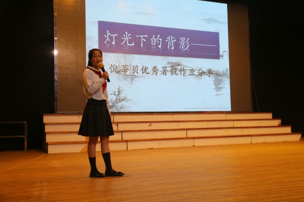 接著,黃梅老師以“朗晴童心,朗晴盛夏”為主題發(fā)言,并展示優(yōu)秀暑期綜合實(shí)踐作業(yè)。同學(xué)們以思維導(dǎo)圖和繪畫(huà)手工的形式分別從“享受運(yùn)動(dòng)”“喜愛(ài)閱讀”“體驗(yàn)家務(wù)”“明確目標(biāo)”等方面記錄豐富的假期生活。六3班倪莘貝同學(xué)作為優(yōu)秀代表與現(xiàn)場(chǎng)同學(xué)們分享了她的暑期作業(yè),講述了她的構(gòu)思和創(chuàng)作過(guò)程?,F(xiàn)場(chǎng)氛圍熱烈,同學(xué)們紛紛感嘆作業(yè)的精美和創(chuàng)作的用心。黃梅老師倡導(dǎo)向以上同學(xué)學(xué)習(xí),用多種形式記錄即將到來(lái)的寒假生活,感受假期的美好與成長(zhǎng)。