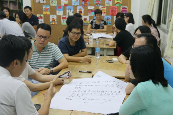 本次家長(zhǎng)會(huì)以班級(jí)為單位開展,流程大致分為七個(gè)模塊,各班班主任和任課教師根據(jù)孩子的年齡特點(diǎn)和班級(jí)具體情況,有針對(duì)性地選擇內(nèi)容有序開展。首先,通過(guò)播放校園新聞視頻,讓家長(zhǎng)們了解學(xué)校辦學(xué)理念和教育教學(xué)現(xiàn)狀。接著,在“我們的團(tuán)隊(duì)”環(huán)節(jié),家長(zhǎng)們互相介紹并以游戲的形式分組,這活動(dòng)增進(jìn)了家長(zhǎng)之間的溝通交流,讓家長(zhǎng)會(huì)氣氛更活躍。然后,班主任和科任老師在模塊 “我們的家”中,就本班的班級(jí)管理、學(xué)生的行為習(xí)慣、各科學(xué)習(xí)現(xiàn)狀等方面做詳細(xì)匯報(bào),讓家長(zhǎng)全方位地了解學(xué)生的在校情況。隨后,在模塊“我們愛(ài)學(xué)習(xí)”中,家長(zhǎng)們以小組合作的方式探討會(huì)前調(diào)查反饋出現(xiàn)的三個(gè)典型問(wèn)題,共同交流行之有效的教育方法。最后,部分班級(jí)進(jìn)行班級(jí)團(tuán)康建設(shè),增強(qiáng)家校凝聚力。