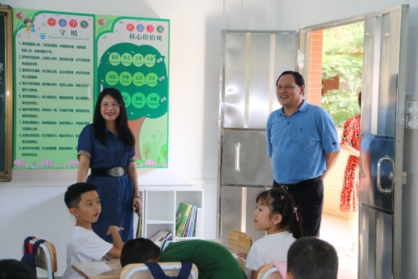 譚書(shū)記一行參觀了朗晴小學(xué)校容校貌,詳細(xì)了解了學(xué)校開(kāi)學(xué)情況,認(rèn)真聽(tīng)取了該校鄭鳳姚校長(zhǎng)的工作匯報(bào)。譚書(shū)記對(duì)朗晴小學(xué)校園文化建設(shè)、教師陽(yáng)光積極的工作狀態(tài)等整體發(fā)展態(tài)勢(shì)給予高度評(píng)價(jià),對(duì)學(xué)生的自信大方給予充分肯定。他指出百年大計(jì)、教育為本,尊師重教是中華民族的傳統(tǒng)美德,他感謝教師們?yōu)闁|區(qū)教育事業(yè)發(fā)展付出的辛勤勞動(dòng),也勉勵(lì)廣大教師進(jìn)一步增強(qiáng)責(zé)任感和使命感,胸懷大局,志存高遠(yuǎn),為東區(qū)教育事業(yè)發(fā)展做出更大的貢獻(xiàn),區(qū)政府也會(huì)盡最大努力提升教師們的幸福指數(shù)。他還叮囑鄭校長(zhǎng)要關(guān)愛(ài)老師,同時(shí)加強(qiáng)師德建設(shè),鞏固和發(fā)展學(xué)校取得的各項(xiàng)優(yōu)異成績(jī),打造更具影響力的朗晴品牌。途中,譚書(shū)記一行進(jìn)入課室,與孩子們親切互動(dòng),詢(xún)問(wèn)孩子們的學(xué)習(xí)生活情況,并鼓勵(lì)孩子們勤奮刻苦,天天向上。