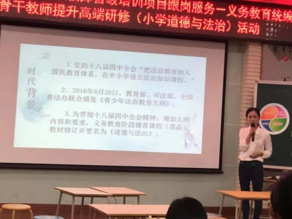 軒小王美老師開展了主題為《小學(xué)法治教育的特點(diǎn)與實(shí)施策略》的講座。王老師指出,小學(xué)生學(xué)法要先強(qiáng)化規(guī)則意識(shí),小學(xué)法治教育要重視培養(yǎng)學(xué)生的規(guī)則性思維。并針對(duì)小學(xué)法治教育提出了有效實(shí)施的策略。最后王老師結(jié)合實(shí)踐,向大家介紹了自己班級(jí)的法治教育實(shí)踐活動(dòng)。