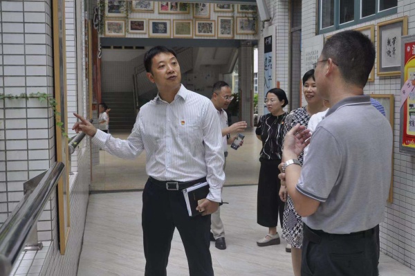 黃宇健副書記一行首先到教師辦公室看望慰問教師,與他們親切交談,了解他們的教學(xué)、生活情況。黃宇健副書記對軒小教師們的積極的工作狀態(tài)和飽滿的精神狀態(tài)給予了極大的贊賞。接著,黃宇健副書記一行深入到課室,觀察孩子們的學(xué)習(xí)情況,并對學(xué)校各班級的班級文化布置表示肯定。走訪中,黃宇健副書記詳細(xì)詢問了開學(xué)初學(xué)生的出勤、健康狀況,老師的就位情況與學(xué)校開學(xué)工作的情況,同時細(xì)心詢問了學(xué)校所面臨的困難。林華志校長表示,學(xué)校的功能場室相對緊缺,希望能夠得到解決。黃宇健副書記一行又到學(xué)校的功能場室進(jìn)行走訪,了解詳情。區(qū)領(lǐng)導(dǎo)對軒小校園環(huán)境及開學(xué)的各項(xiàng)工作有條不紊表示了肯定,對充滿藝術(shù)氣息的書法室、書法長廊和軒小的藝術(shù)教育表示了極大的贊賞。
