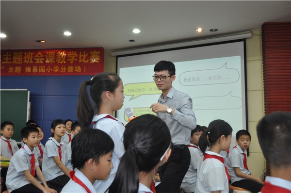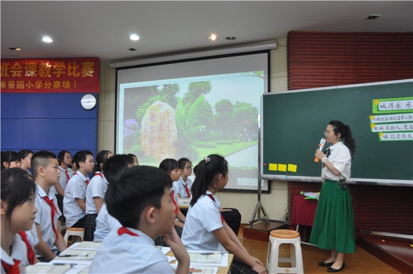 4月23日,該項賽事的小學4-6年級組第二場比賽在東區(qū)雍景園小學舉行,中山市教研室中小學德育教研員、辦公室主任朱敏嫣擔任了本場比賽的監(jiān)審員,周紅、麥水貞、楊艷、孫川、高靜等5位市內(nèi)資深德育干部、名班主任擔任本場比賽的評委,來自中山各鎮(zhèn)區(qū)兄弟學校近400位老師到現(xiàn)場觀摩了比賽,東區(qū)雍景園小學校長歐淑霞、德育副校長班榮軍、德育處主任郭楊德等行政全程參與了活動。