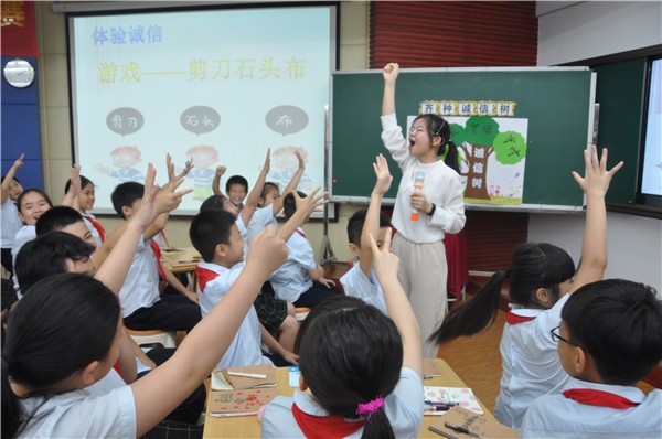比賽當天,參賽選手一共呈獻了七節(jié)以“誠信”為主題的班會課。來自中山市南區(qū)北臺小學、橫欄鎮(zhèn)四沙小學、石岐中心小學、小欖鎮(zhèn)九洲基小學、阜沙鎮(zhèn)羅松小學、民眾鎮(zhèn)三民學校、五桂山學校的七位參賽教師展現(xiàn)了風格各異的精彩課堂:有的課采用數(shù)據(jù)分析的方法,教學內(nèi)容緊扣“誠信”的話題,層層遞進;有的課通過課堂游戲,讓學生感知和理解誠實與守信;更有的課借用社會熱點問題,引導(dǎo)學生通過分析和討論,明白誠實與守信體現(xiàn)在現(xiàn)實生活中的每一件小事中,要從身邊做起,從自己做起……七位參賽老師別出心裁的執(zhí)教構(gòu)思,靈活多樣的展現(xiàn)形式,讓整場班會課比賽趣味橫生,精彩紛呈。