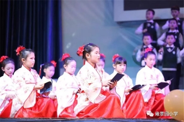 “時(shí)間到,雍景園小學(xué)三年級(jí)慶元旦文藝匯演正式開始!”上午9點(diǎn)整,隨著主持人的一聲令下,三1班全體同學(xué)表演的大合唱《新年好》第一個(gè)閃亮登場,拉開了本次元旦匯演的序幕,熱情奔放的歌聲立刻感染了全場的每個(gè)學(xué)生;接下來,三2班全體同學(xué)表演的舞蹈加朗誦《剪窗花》,道具逼真,表演到位,聲情俱茂,贏得了全場的陣陣喝彩;三6班男同學(xué)表演的男子舞蹈《快樂籃球》,嫻熟的動(dòng)作整齊劃一,陽剛之美熱情四溢。三5班尹杭等同學(xué)帶來的T臺(tái)走秀《五彩繽紛炫童年》,用孩子的形體和視角去演繹自己的精彩?!度纸?jīng)》是中華民族珍貴的文化遺產(chǎn),它短小精悍,瑯瑯上口,千百年來,家喻戶曉。其內(nèi)容涵蓋了歷史、天文、地理、道德以及一些民間傳說,所謂“熟讀《三字經(jīng)》,可知千古事”。三6班全體同學(xué)合唱《三字經(jīng)》,將演出推向了高潮。