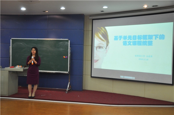 下午,余老師為全體新教師做了《基于單元目標(biāo)框架下的語文課程統(tǒng)整》專題講座,她期待新教師不僅可以看到自己的教育教學(xué)的現(xiàn)狀,更應(yīng)該清晰地知道把目光投向更遠(yuǎn)的地方,把握教育的最新動態(tài)和發(fā)展方向。在講座中她清晰的介紹了“課程統(tǒng)整”及自己團(tuán)隊(duì)的實(shí)踐,以具體課例的設(shè)計(jì)操作進(jìn)行分享,讓新教師有所思考。“目標(biāo)先行”是余主任一直倡導(dǎo)和推行的,她希望新教師可以在自己職業(yè)生涯最辛苦、最茫然也是成長最快的三年里,既要腳踏實(shí)際做好日常工作,又要仰望星空,找到自己職業(yè)生涯的偉大夢想。教師們紛紛把握機(jī)會,向余老師提出自己教學(xué)乃至班級管理工作方面的困惑,余老師都一一講解。