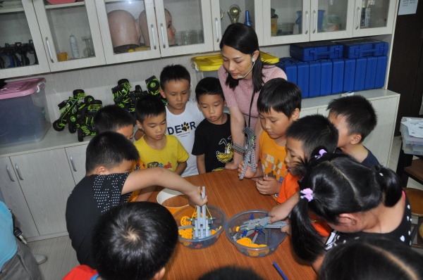 當(dāng)天下午2:00,廣播響起,該校同學(xué)們在老師的組織下有序參賽。此次競賽的項(xiàng)目有很多,有機(jī)器人現(xiàn)場拼裝賽、結(jié)構(gòu)塔創(chuàng)意搭建賽、電腦數(shù)字作品創(chuàng)作賽、多米諾骨牌限時(shí)挑戰(zhàn)賽、科學(xué)幻想繪畫賽、3D涂鴉筆繪畫賽、越野車競速賽……各項(xiàng)比賽分別安排在該校的不同場室進(jìn)行。電腦數(shù)字作品創(chuàng)作賽地點(diǎn)安排在電腦室;多米諾骨牌限時(shí)挑戰(zhàn)賽地點(diǎn)安排在電教室;科學(xué)幻想繪畫賽地點(diǎn)安排在三樓美術(shù)室;3D涂鴉筆繪畫賽地點(diǎn)安排在三樓國畫室……。這些比賽項(xiàng)目還根據(jù)年齡特點(diǎn)設(shè)置不同的要求分開不同場室進(jìn)行比賽。