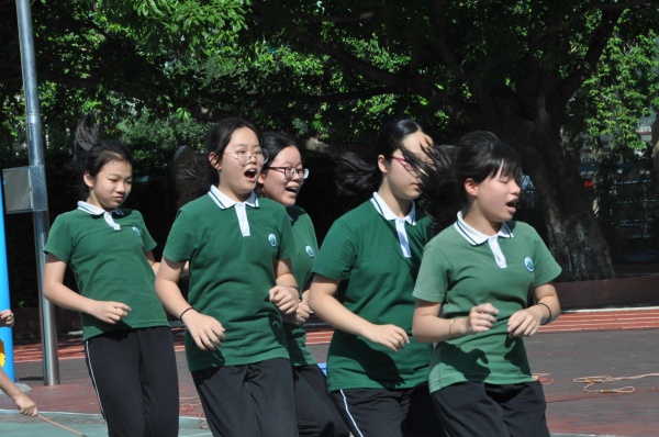 隨著一聲哨響,比賽拉開(kāi)了帷幕。每位同學(xué)都使出渾身解數(shù),跳繩的隊(duì)員隨著飛舞的大繩以飛快的速度跳躍著,搖繩的隊(duì)員緊盯長(zhǎng)繩,努力配合著跳繩選手的節(jié)奏,盡量減少失誤。各組選手顯然是有備而來(lái),信心十足。有的組配合默契,跳繩的身輕如燕,搖繩的節(jié)奏把握自如,幾乎沒(méi)有磕絆,場(chǎng)外觀眾贊嘆不已,不約而同地為他們數(shù)著次數(shù);有的組雖然不斷有小插曲,但組員毫不氣餒,團(tuán)結(jié)一致,調(diào)整狀態(tài),積極投入比賽,也贏得了大家熱烈的掌聲。