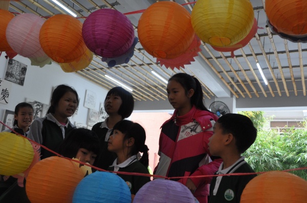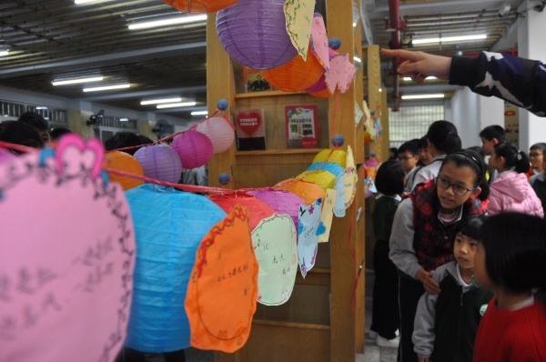 上午第3節(jié)課上課鈴一響,全校學(xué)生變分為了三組,開始了猜燈謎活動。每一組活動中,都是由高年級的孩子們便有條不紊地排好隊,安靜有序地去低年級結(jié)對班級,領(lǐng)著弟弟妹妹們進入“燈園謎?!薄?/p>