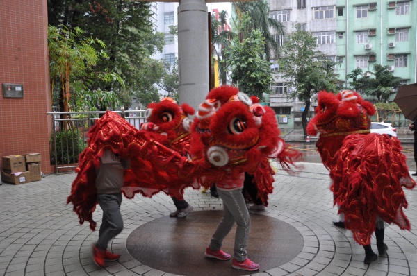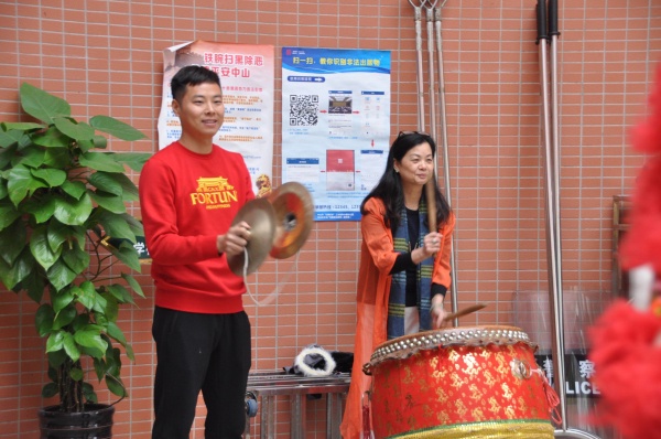 一樓大堂,東區(qū)舞獅協(xié)會(huì)會(huì)長(zhǎng)帶著團(tuán)隊(duì)親自教孩子們體驗(yàn)舞獅。