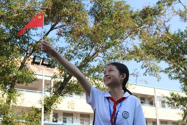 隨著早晨第一道鈴聲響起,起灣學(xué)校全體師生集中操場(chǎng),在鼓號(hào)隊(duì)奏響雄壯的出旗曲下,護(hù)旗手們扛著國(guó)旗、邁著剛勁有力的步伐,精神抖擻地走向升旗臺(tái)。隨著主持人的號(hào)令下,整齊嘹亮的國(guó)歌聲響徹在起灣學(xué)校上空,鮮艷的五星紅旗冉冉升起,迎風(fēng)飄揚(yáng)。