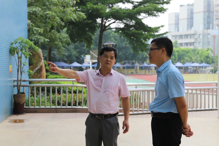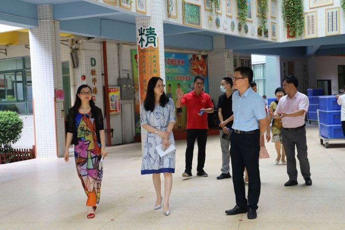 2020年新學年開學如期而至,水云軒小學開學典禮正緊鑼密鼓地有序進行,全體教職工整裝待發(fā),精神飽滿。9月1日上午,水云軒小學迎來幾位特殊的守護人——東區(qū)教辦主任許嵐、熊海敏、教辦德育專干盧展紅老師以及東區(qū)社區(qū)衛(wèi)生服務中心副主任醫(yī)師石國新一行來到水云軒小學實地了解開學各項工作的進行情況,一起為孩子們開學保駕護航。水云軒小學校長林華志、書記曾文珍、副校長黃曉彤等人熱情隨行并做工作介紹。