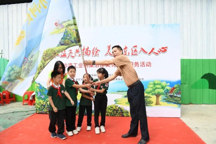 10月17日上午,東區(qū)水云軒小學(xué)二(8)中隊20組親子家庭參加由東區(qū)河長辦主辦,東區(qū)文明辦、東區(qū)志愿者協(xié)會、齊富灣社區(qū)共同協(xié)辦的 “碧水藍天共描繪,美麗東區(qū)入人心”沿岸美化志愿服務(wù)活動。活動在白沙灣工業(yè)明渠沿岸開展?;顒娱_始,由中山市東區(qū)黨工委副書記黃沛華為本次活動致辭,中山市河長辦四級調(diào)研員張志明向?qū)W生代表授旗,并共同簽下“愛河護河,我們齊行動”東區(qū)水環(huán)境保護倡議書。此次活動共分為兩大部分,第一部分是用手描繪心中美景,軒小志愿者們一起揮起手中的畫筆,共同描繪美麗東區(qū),裝點河渠兩岸;第二部分是認真學(xué)習(xí)護河知識和巡河。社區(qū)級河長、齊富灣社區(qū)黨委書記唐宇麟分別就河涌環(huán)境治理知識以及巡河時的安全問題給孩子們進行講解。講解結(jié)束后,在社區(qū)級河長的帶領(lǐng)下,小河長們在白沙灣工業(yè)明渠沿岸開始了第一次的巡河活動,并就岸邊的垃圾進行回收以及分類,讓隊員們不只是停留在學(xué)習(xí)環(huán)保知識的層面上,而是身體力行地去做好環(huán)保,進一步提升自身環(huán)保意識。