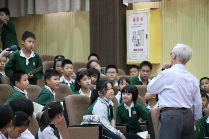 最后出場(chǎng)的是陳賀能教授,陳教授是中國科學(xué)院高級(jí)工程師。曾在中國科技大學(xué)近代物理系任教,曾任中國科學(xué)院新技術(shù)開發(fā)局項(xiàng)目主任、高技術(shù)發(fā)展局副總工程師,并派往新華社香港分社和中國科學(xué)院駐港機(jī)構(gòu),參與了激光技術(shù)應(yīng)用項(xiàng)目的研發(fā)。陳教授結(jié)合自身的科研經(jīng)歷,跟孩子們分享了科學(xué)家思考和探索問題的方法,鼓勵(lì)孩子們永遠(yuǎn)保持一顆好奇之心,勤于思考、勇于創(chuàng)新,努力為國家科技發(fā)展而奮斗。