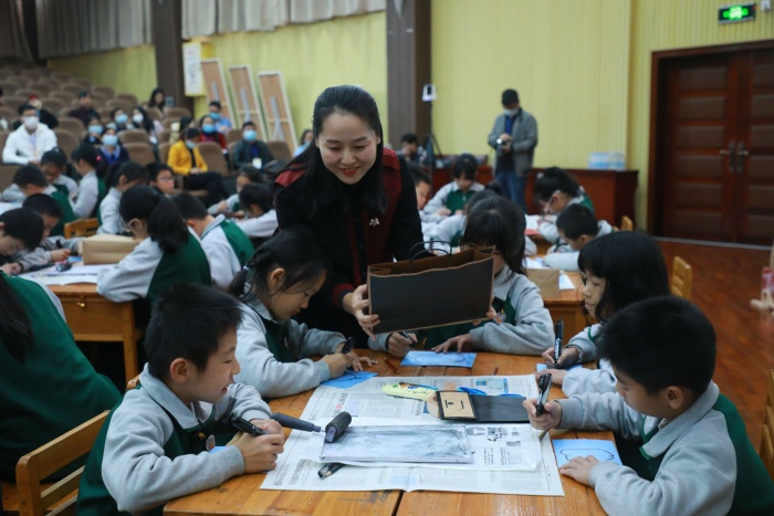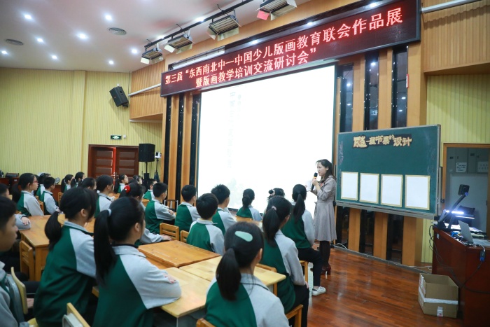 12月25日下午,第三屆“東西南北中·中國少兒版畫教育聯(lián)會作品展暨版畫教學培訓交流研討會”全體參會人員齊聚東區(qū)朗晴小學,開展交流研討活動。