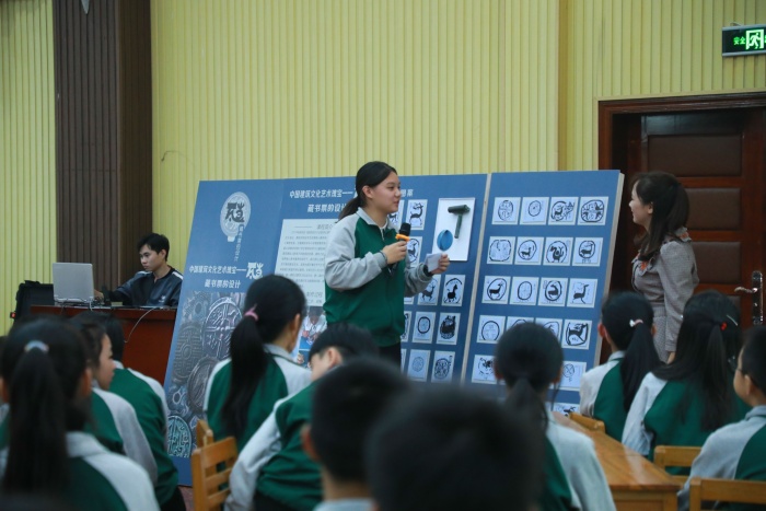 彭章均老師執(zhí)教的《瓦當》層層遞進,引導學生了解瓦當?shù)南嚓P知識與藏書票文字與圖案的布局方法,設計以瓦當為主題的藏書票,激發(fā)學生對民族文化藝術的興趣,傳遞運用所學知識美化生活的愿望。