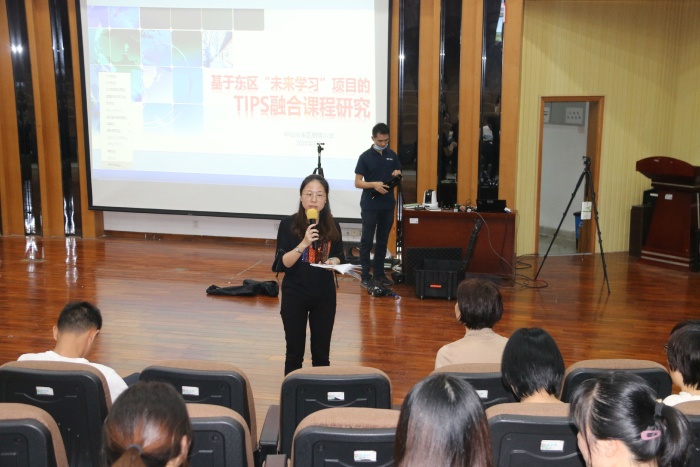 會議梳理了朗晴小學(xué)“基于東區(qū)‘未來學(xué)習(xí)’項目的TIPS融合課程研究”獲中山市教育技術(shù)中心立項的緣由歷程,再次重述“TIPS”內(nèi)涵,即技術(shù)支持的學(xué)習(xí)(Techology &Media),跨學(xué)科的融合課程(Integrated curriculum),基于項目的學(xué)習(xí)(Project Based learning),培養(yǎng)合作的社會技能(Social skills)。就項目開展過程中的困惑與中山市教育技術(shù)中心的反饋意見進行了梳理。在此基礎(chǔ)上,陳麗媛主任闡述了項目的后期建設(shè)與規(guī)劃要求,明確指出應(yīng)以完善和構(gòu)建智慧教學(xué)環(huán)境,實踐與實施智慧教學(xué)模式,開發(fā)、應(yīng)用與共享數(shù)學(xué)資源為研究目標(biāo),各學(xué)科組長應(yīng)成為中堅力量,更新教學(xué)理念,帶領(lǐng)學(xué)科組教師在實踐中探索創(chuàng)新,順利完成融合課程實踐課指標(biāo),積累經(jīng)驗與智慧,最終助力學(xué)校轉(zhuǎn)變?yōu)閷嵤?shù)字化常態(tài)教學(xué)的新型智慧學(xué)校。