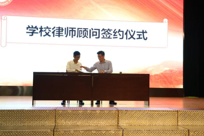 為了讓學(xué)校的法制工作開展得更加順暢,學(xué)校聘請(qǐng)東區(qū)起灣派出所警員李木生為學(xué)校法制輔導(dǎo)員,聘請(qǐng)東區(qū)起灣派出所副所長羅勇彬?yàn)閷W(xué)校法制副校長,林校長為他們頒發(fā)了聘書。同時(shí),學(xué)校還聘請(qǐng)了廣東凱行律師事務(wù)所朱志強(qiáng)律師為學(xué)校專業(yè)的律師顧問,并進(jìn)行了簽約。