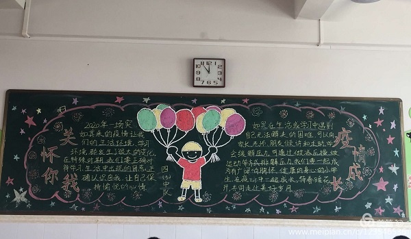 此次活動,全體師生積極參加,用心準備。同學們都能積極參與。在老師的指點下,各班負責黑板報的同學們采用多種途徑查閱、收集有關新冠肺炎的資料,精心選材并設計方案,仔細書寫、細致描畫,創(chuàng)作出了一幅幅主題鮮明、內(nèi)容豐富、圖文并茂、形式新穎的優(yōu)秀板報作品,按期完成了“關懷你我,‘疫’境成長”的黑板報宣傳活動。雖然有些同學并不是十分懂得繪畫的技巧,但是他們?nèi)匀慌⑺辛λ芗暗氖虑樽龊谩@缢麄儬幹鲋饕?,精神抖擻地站在一旁隨時做好遞接的協(xié)助工作。