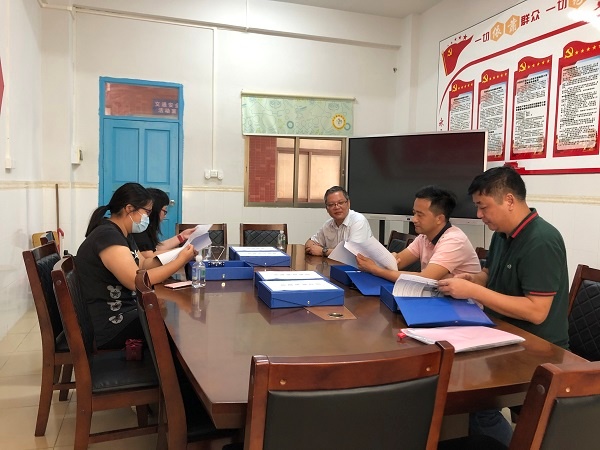 白校長(zhǎng)等人先對(duì)照《中山市文明校園評(píng)分表》,從“領(lǐng)導(dǎo)班子建設(shè)”、“思想道德建設(shè)”、“活動(dòng)陣地”、“教師隊(duì)伍”、“校園文化”、“校園環(huán)境”等七個(gè)方面,通過(guò)查看有關(guān)文明創(chuàng)建文件及圖片資料,了解該校文明創(chuàng)建情況,并對(duì)材料進(jìn)行逐條審查,逐項(xiàng)賦分。