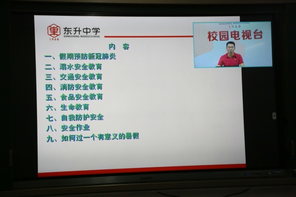 本次暑假安全教育活動(dòng)由東升中學(xué)德育處黎國明副主任作專題講座。講座中安全教育內(nèi)容較為廣泛,從“交通安全,飲食安全,防火、防觸電、防汛防洪、防溺水、防拐騙、防暴力侵害”等方面進(jìn)行了解說;另外,還組織大家觀看了關(guān)于預(yù)防性侵、防溺水、交通安全、網(wǎng)絡(luò)安全等教育視頻。