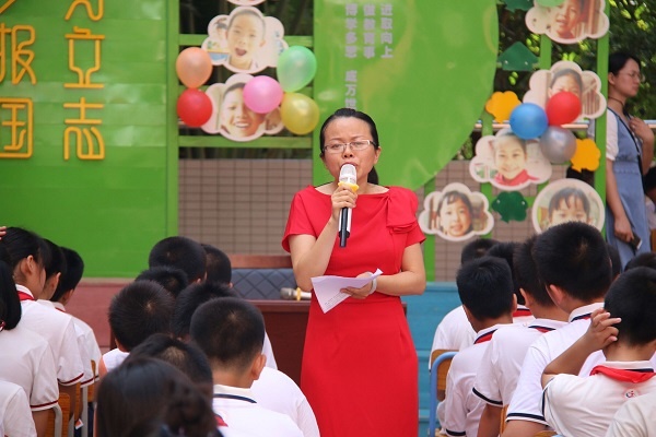 典禮伊始,全校師生肅立,奏響國歌,全體共唱國歌;禮畢,再合唱校歌。近年來,裕民小學(xué)散學(xué)典禮第一環(huán)節(jié)必是如此,目的是培養(yǎng)孩子們的愛國、愛校、愛家之心。