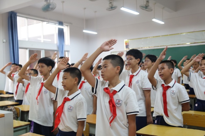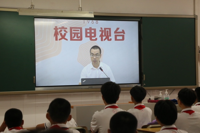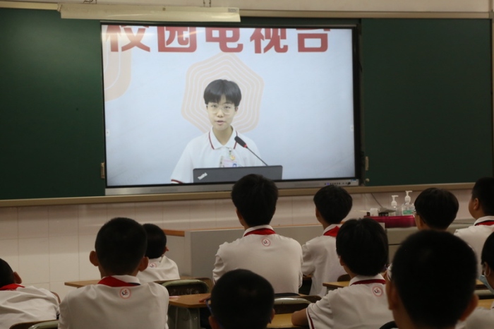 下午突降大雨,按照預(yù)案,全體師生留在教室。學(xué)校利用校園電視臺(tái),舉行了簡(jiǎn)潔明快的開學(xué)禮。開學(xué)禮必不可少的儀式——展國(guó)旗高唱國(guó)歌順利進(jìn)行。在雄壯的國(guó)歌聲伴奏下,師生們注目大屏幕上的國(guó)旗,一起唱響了國(guó)歌。通過電視屏幕,同學(xué)們一一認(rèn)識(shí)了學(xué)校行政團(tuán)隊(duì)成員。