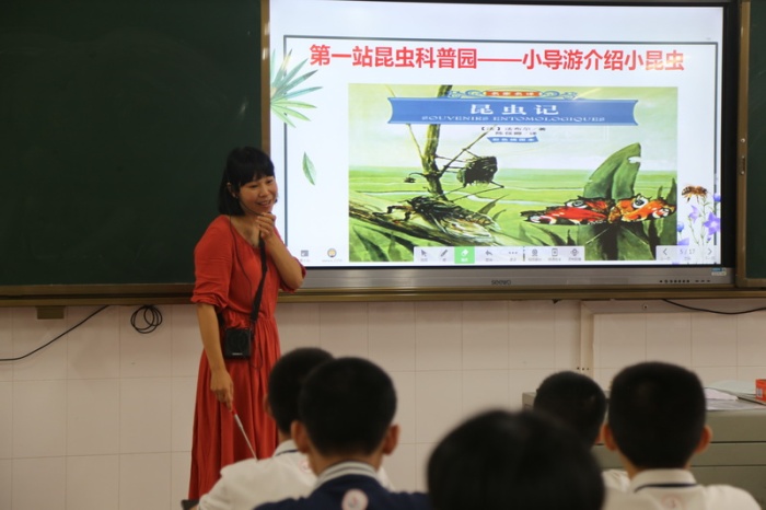 調(diào)研組先聽取了東升中學初二年級語文學科吳銀芳老師執(zhí)教的《昆蟲記》名著導讀課,并在課后針對執(zhí)教教師的課堂教學情況給予全面的評價,充分肯定教師教學工作的亮點,同時也對教師提出中肯的意見和建議。聽課專家一致認為,吳銀芳老師以小組合作的方式,利用愛米云平臺和希沃白板,充分挖掘和發(fā)揮智慧課堂的潛力;與此同時,吳老師還結(jié)合“先學后教、小組合作、當堂訓練”高效課堂教學模式,讓學生從被動學習轉(zhuǎn)化為主動學習,切實實現(xiàn)了將課堂還給學生。
