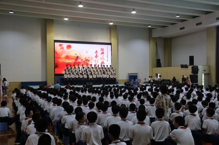 的確,這次由共青團東升中學委員會(初二)和東升中學少先隊大隊(初一)聯(lián)合組辦的班歌合唱大賽,得到了學校大力支持。從演出場地布置,到舞臺燈光背景布置,都達到相當高的水準。為了演出效果達到最好,學校還專門找了社會專業(yè)音像予以助陣。因此,整個演出被盧秋玉老師評為“高大上”。