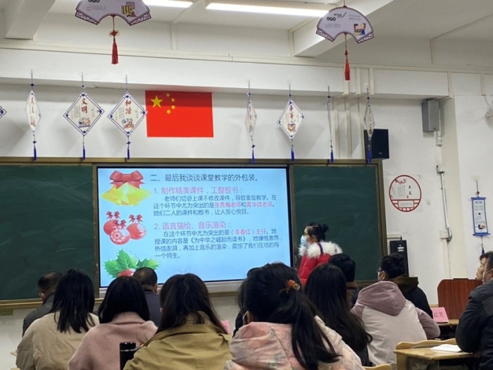 總結(jié)會首先由語文科組長植藝遠老師、數(shù)學科組長宋潔老師、英語科組長靜老師對本科組比賽情況進行了一次完整總結(jié)和具有針對性的評價。他們分別從自主課堂+語文學科的“讀中悟”;視頻+數(shù)學學科的“練中學”;學習單+“境中讀”進行了針對性的評課。并與老師進行交流,大家在交流中不僅拓展了視野,對自主課堂的模式更有了更深的理解。