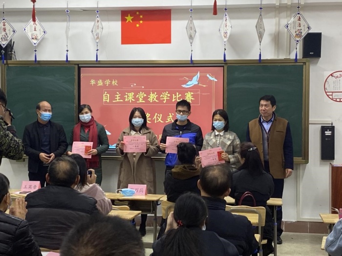 三位科組長分別總結(jié)后,教務(wù)處主任宣布了本次“自主課堂”教學比賽中獲獎老師名單。李春紅老師、黃亦成老師、吳恩妮老師、賴素文老師獲得一等獎;周金風老師、張秀梅老師、黃華微老師獲得二等獎;歐錦清老師、張根秀老師、何曉丹老師獲得了三等獎。由頒獎嘉賓分別對獲獎的教師頒發(fā)了榮譽證書和獎金。
