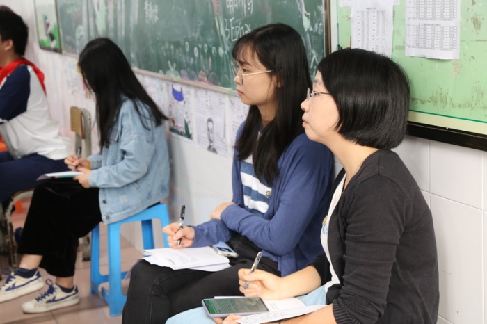 一大早,督導組成員分別步入教室,隨機旁聽了初一書法、地理、語文、數(shù)學以及初三英語、物理和數(shù)學等八節(jié)課。之后,學校師生進行了問卷調(diào)查。督導組還查閱了學校資料并巡視了校園。