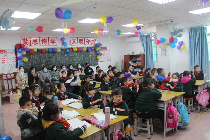 學(xué)校首先向家長們開放第一、二節(jié)的課堂教學(xué)。教學(xué)科目包含了學(xué)校的大部分課程,語文、數(shù)學(xué)、英語、美術(shù)、音樂、道德與法治……課堂上,每位老師都充滿激情,運(yùn)用多種教學(xué)方式與學(xué)生互動,讓學(xué)生更多地展示。每一位學(xué)生也感受到家長的關(guān)注,積極思考,大膽發(fā)言,整個課堂充滿了和諧、融洽。每一位家長也都專注聽著老師的授課,關(guān)注孩子學(xué)習(xí)的每一個細(xì)節(jié),不時掏出手機(jī)記錄下課堂的精彩瞬間,他們的臉上露出了會心的微笑。