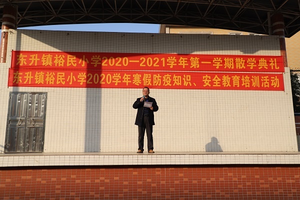 2021年1月15日,東升鎮(zhèn)裕民小學(xué)舉行了2020——2021學(xué)年度第一學(xué)期散學(xué)典禮。典禮由該校的溫小玲副校長主持。典禮主要內(nèi)容有:法制教育,學(xué)??偨Y(jié),假期安全要求,期末頒獎(jiǎng),以及班主任及各科任老師關(guān)于假期生活等各方面的科學(xué)指引。