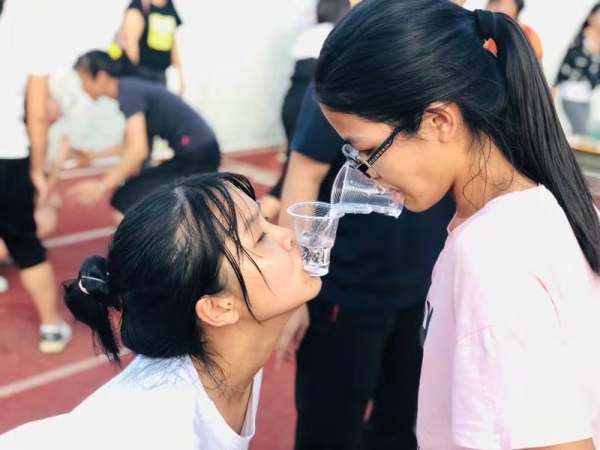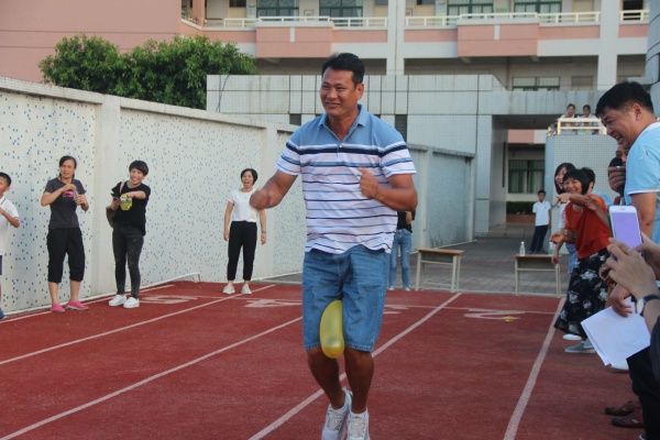 下午放學(xué)后,學(xué)校舉行了別開(kāi)生面的教師節(jié)團(tuán)隊(duì)游戲活動(dòng)。在體育科組的精心準(zhǔn)備下,游戲的器材、評(píng)分的記錄表以及相關(guān)場(chǎng)地的劃分已經(jīng)全部就緒。全體教師按辦公室分成五個(gè)小組進(jìn)行游戲競(jìng)賽。本次團(tuán)隊(duì)游戲包括“丑小鴨接力賽”、“紙杯傳水”、“吸管運(yùn)輸”、“神筆馬良”四項(xiàng)內(nèi)容。首先進(jìn)行的是妙趣橫生的“丑小鴨”接力賽。隨著裁判員一聲哨聲,各組第一棒馬上奮力跑出,雙腳夾著氣球跑,以最快的速度沖向?qū)γ?,把氣球交到下一棒?duì)員的手中。有的隊(duì)員氣球夾得不穩(wěn),掉落了,沒(méi)關(guān)系,把氣球追回來(lái),在原地重新開(kāi)始跑;還有的隊(duì)員雙腳夾得太緊、用力太猛,竟然把氣球給夾破了,引來(lái)了老師們的陣陣笑聲。接著,進(jìn)行的是激動(dòng)人心的“紙杯傳水”和“吸管運(yùn)輸”。這兩個(gè)貌似簡(jiǎn)單的游戲,考驗(yàn)的是隊(duì)員之間配合默契,如果隊(duì)員間少缺點(diǎn)合作性都會(huì)使杯中水濺落,把吸管上的小鐵環(huán)掉落。在一次又一次的失敗中,在圍觀學(xué)生的加油聲中,老師們終于成功合作完成任務(wù),大家都非常開(kāi)心。最后,進(jìn)行的是“神筆馬良”。寫(xiě)字是老師們的看家本領(lǐng),作為老師,用毛筆在紙上寫(xiě)字是一件輕而易舉的事,可要求5人一齊,用一支超大的毛筆,在不觸碰筆桿和筆身的前提下,在A3紙上寫(xiě)出“一馬平川”這四個(gè)字,就不是一件容易的事。這需要團(tuán)隊(duì)成員間的高度配合協(xié)作,還需要每位成員的專注與耐心。經(jīng)過(guò)短暫的商討戰(zhàn)略,努力的書(shū)寫(xiě),一幅幅別具特色的書(shū)法作品便展現(xiàn)在大家面前。一個(gè)多小時(shí)的比賽精彩不斷,整個(gè)賽場(chǎng)歡呼聲、吶喊聲、笑聲此起彼伏,場(chǎng)面好不熱鬧!
