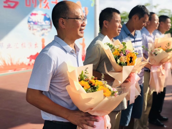 清晨,冷清的街道和勝龍小學(xué)熱鬧的校園形成了強(qiáng)烈的對(duì)比。一踏入校園,就有同學(xué)親熱地圍上來(lái),拉著你的手,甜甜地送上:“老師,祝你節(jié)日快樂(lè)!”的祝福;迎面而來(lái)的同學(xué)也將往日的“老師,早上好!”改成了“老師,節(jié)日快樂(lè)!”。利用課間操時(shí)間,學(xué)校舉行了簡(jiǎn)單而隆重的“師恩難忘 感謝有你”慶祝教師節(jié)主題教育活動(dòng)。在冼學(xué)峰校長(zhǎng)熱情洋溢的致辭后,全體教師逐一登臺(tái)亮相,接受家委和學(xué)生代表們?yōu)槔蠋焸兯蜕狭缩r花與祝福。每位老師的臉上都掛著幸福的笑容和滿足!紛紛表示:“當(dāng)老師,真幸福!”。