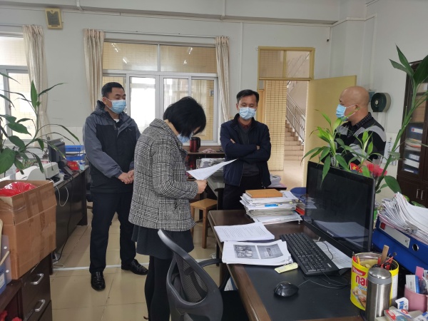 2月13日上午,鎮(zhèn)文體教育局肖桂元副局長(zhǎng)、袁輝老師和蔣陽(yáng)曄老師到太平小學(xué)指導(dǎo)防疫防控工作。幾位領(lǐng)導(dǎo)對(duì)學(xué)校的教室、辦公室、臨時(shí)隔離室等功能室進(jìn)行實(shí)地督查,現(xiàn)場(chǎng)檢查了學(xué)校防控疫情工作的落實(shí)情況。領(lǐng)導(dǎo)們對(duì)本單位實(shí)行輪流值班,每天都有校長(zhǎng)及中層、老師、保安進(jìn)行值班、堅(jiān)守陣地,學(xué)校實(shí)施疫情防控全面跟蹤、排查、報(bào)告,按要求每天及時(shí)報(bào)送跟蹤、排查相關(guān)數(shù)據(jù)等做法表示充分的肯定。實(shí)地督查后,領(lǐng)導(dǎo)們還查看了學(xué)校疫情防控的相關(guān)方案等,學(xué)校的資料齊全、數(shù)據(jù)詳細(xì)也等到了領(lǐng)導(dǎo)們的肯定。為了更清晰、細(xì)致,領(lǐng)導(dǎo)們對(duì)資料分類(lèi)也給了中肯的建議。